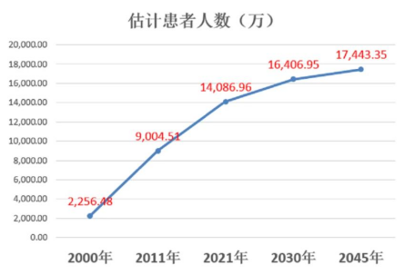 ▲2000年-2045年中國糖尿病報(bào)告/圖片來源:IDF