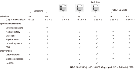 患者按照1×10^6 /KG的劑量在第7天±3天、第14天±3天和第21天±3接受了三次靜脈輸注hUC-MSC。并在第0天±3天、第28天±3天和第84天±3天進(jìn)行了3次訪問。