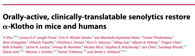 2015年,美國梅奧醫(yī)學中心的 James Kirkland 博士等在 Aging Cell 雜志發(fā)表論文,報道了一類選擇性殺傷衰老細胞的藥物組合——Senolytics。