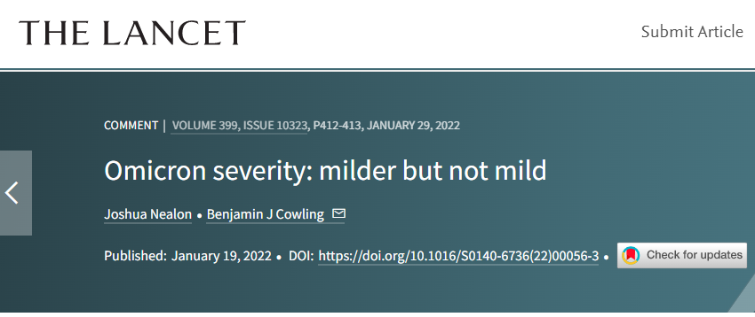 [2]Omicron severity: milder but not mild. https://doi.org/10.1016/S0140-6736(22)00056-3