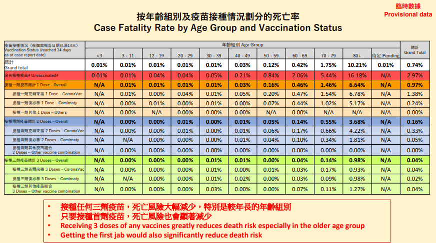 這個時候就體現(xiàn)疫苗的重要性了,以香港年初的奧密克戎疫情舉例,在第五輪疫情中,奧密克戎已累計導致近萬人死亡,有兩個數(shù)據(jù)值得注意—2.97%和0.04%,前者為未接種疫苗的最終病死率,而后者是三針齊全患者的死亡率,僅僅是未接種者的零頭。