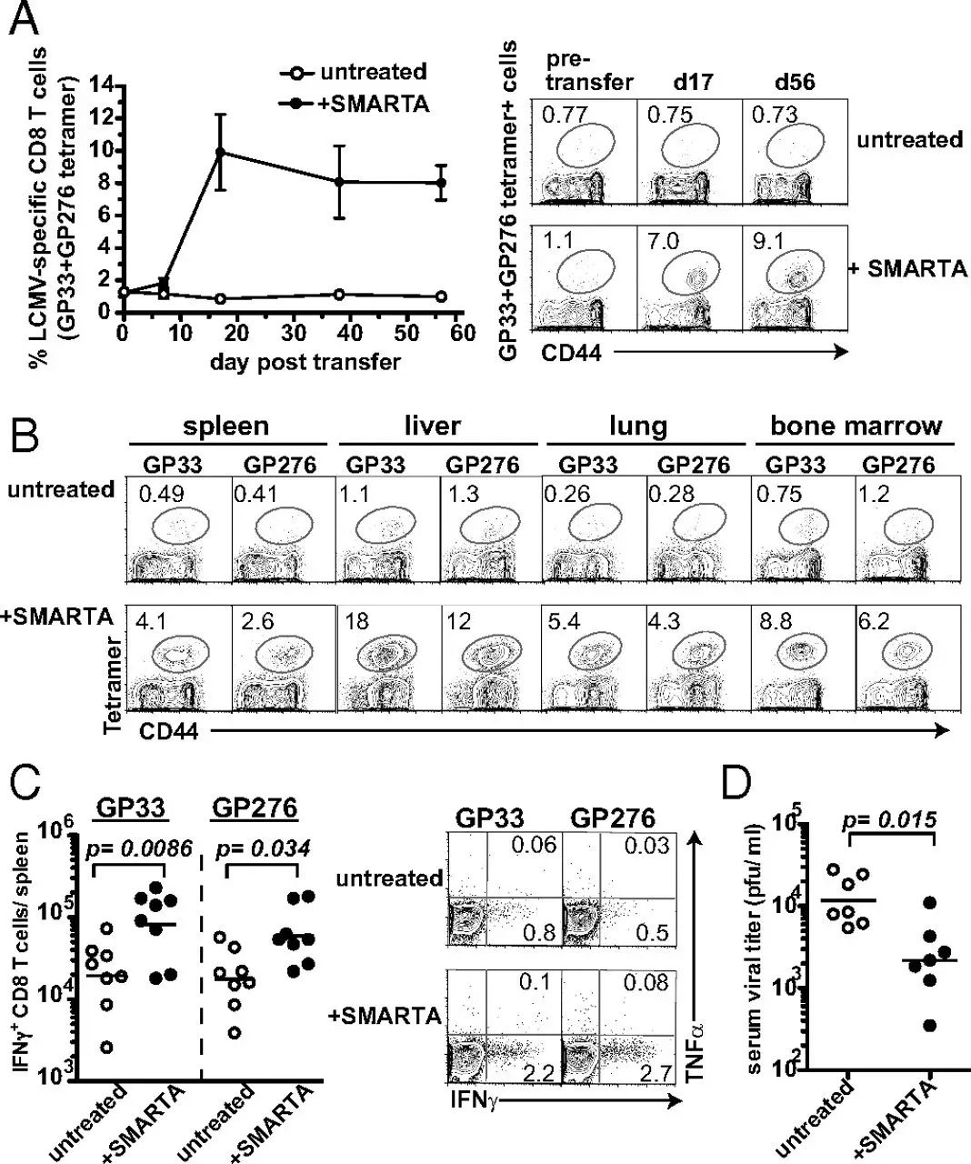 △CD4 T細胞的回輸有利于增強LCMV特異性CD8 T細胞的反應(yīng)