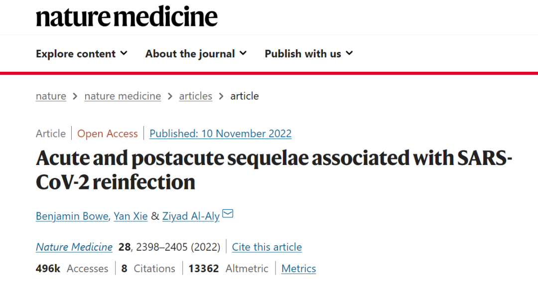 Benjamin Bowe, Yan Xie ,et al.Acute and postacute sequelae associated with SARS-CoV-2 reinfection.https://www.nature.com/articles/s41591-022-02051-3