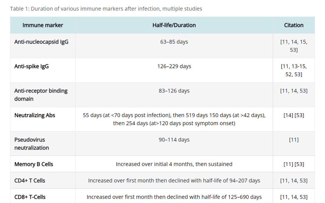 美國(guó)CDC的一項(xiàng)分析中,匯總了新冠感染之后人體各個(gè)免疫應(yīng)答的持續(xù)時(shí)間。從以往的重癥患者病例解剖報(bào)告中免疫細(xì)胞的銳減,我們也能知曉,免疫細(xì)胞是新冠嚴(yán)重程度和死亡的關(guān)鍵因素。