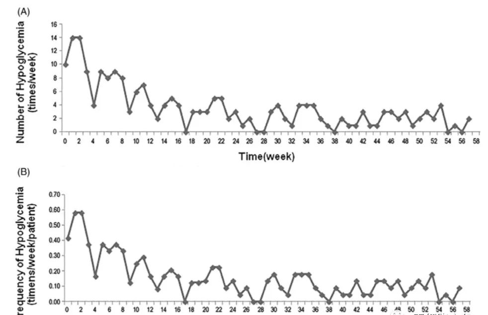 此外該項(xiàng)研究對(duì)干細(xì)胞治療的安全性也進(jìn)行了觀察。 低血糖是研究期間最常見(jiàn)的不良事件。在治療期間,所有 24名患者的低血糖頻率均有所增加,并達(dá)到每名患者每周 0.51次的峰值。在隨訪期間,所有22名患者的低血糖頻率均顯著降低。