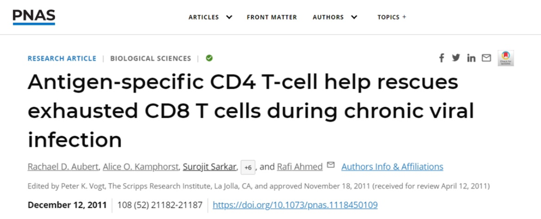 抗原特異性CD4 T細(xì)胞有助于在慢性病毒感染期間拯救耗盡的CD8 T細(xì)胞